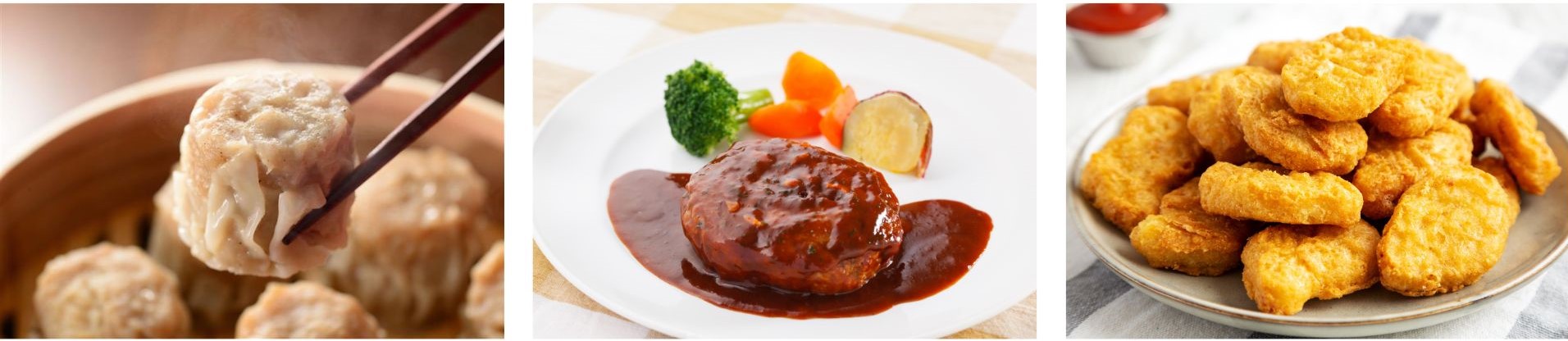 【焼売、ハンバーグ、ナゲットなどの畜肉食品】瑞々しさ、風味の付与、食感改良