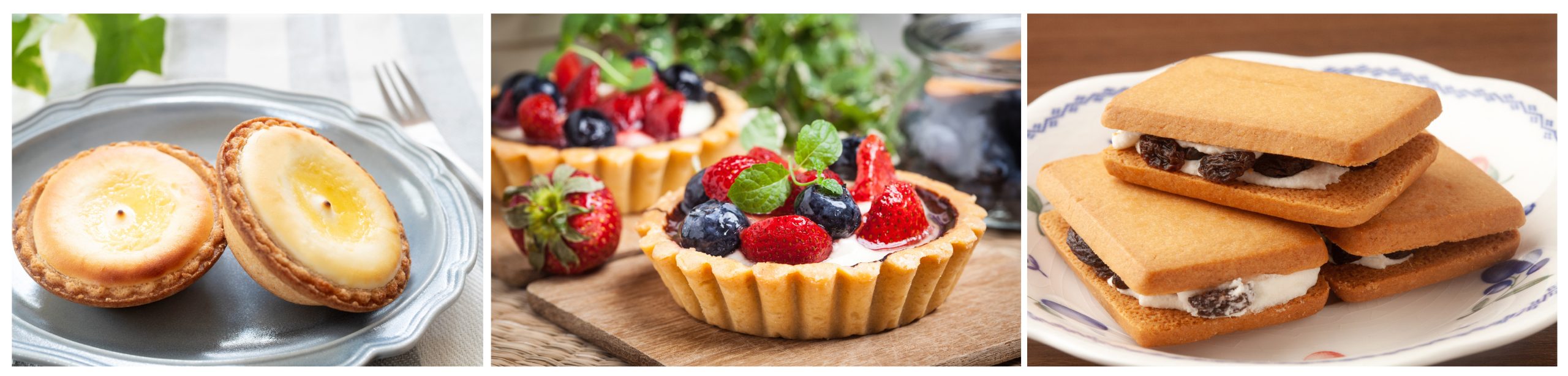 ・タルトやクッキー生地に練り込むことで、フィリングの水分移行による食感低下を抑制します。